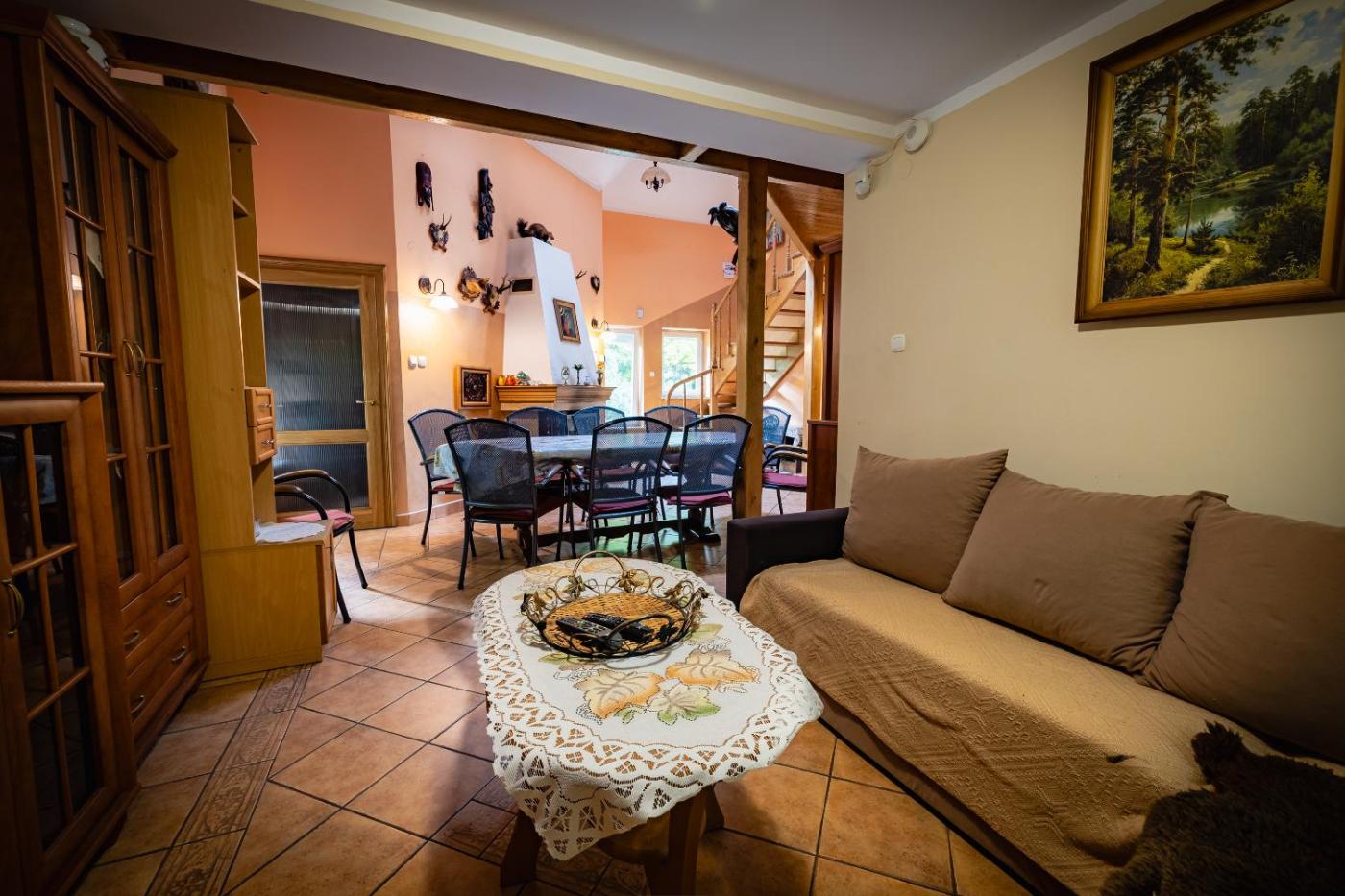 Dom Nad Stawem w Rakszawie to doskonałe miejsce na wypoczynek wśród natury, które oferuje komfortowe warunki oraz liczne udogodnienia dla gości. Na terenie obiektu znajduje się prywatny parking 🚗, co zapewnia wygodę podróżującym własnym środkiem transportu. Goście mogą również korzystać z ogrodu 🌳 oraz tarasu 🌞, idealnych do relaksu na świeżym powietrzu. Wspólna kuchnia 🍳 daje możliwość przygotowania posiłków, a dla większej wygody dostępna jest wspólna część rekreacyjna / sala TV 🎬.